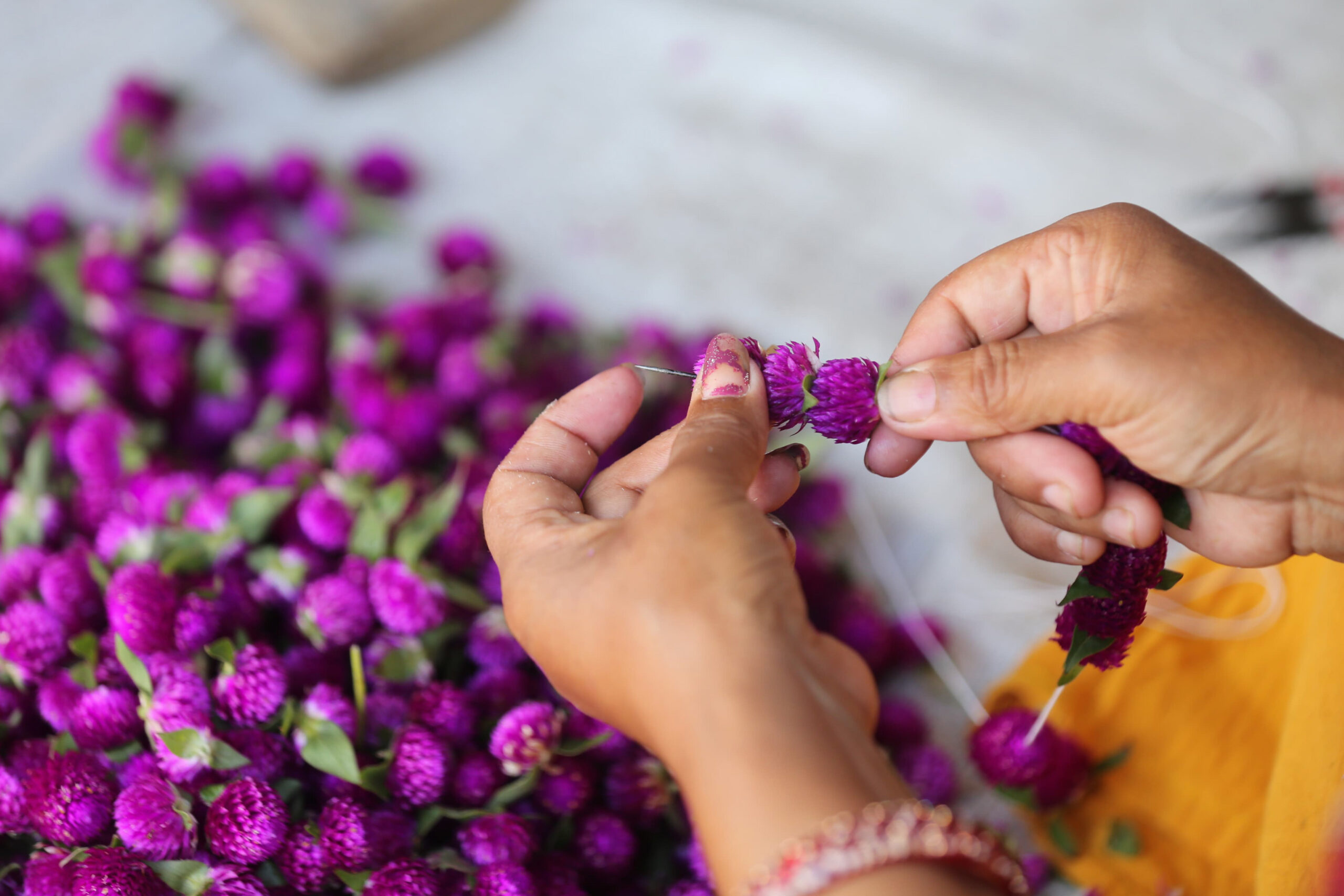 At present, farmers pick flowers in the morning and garland in the afternoon. ।