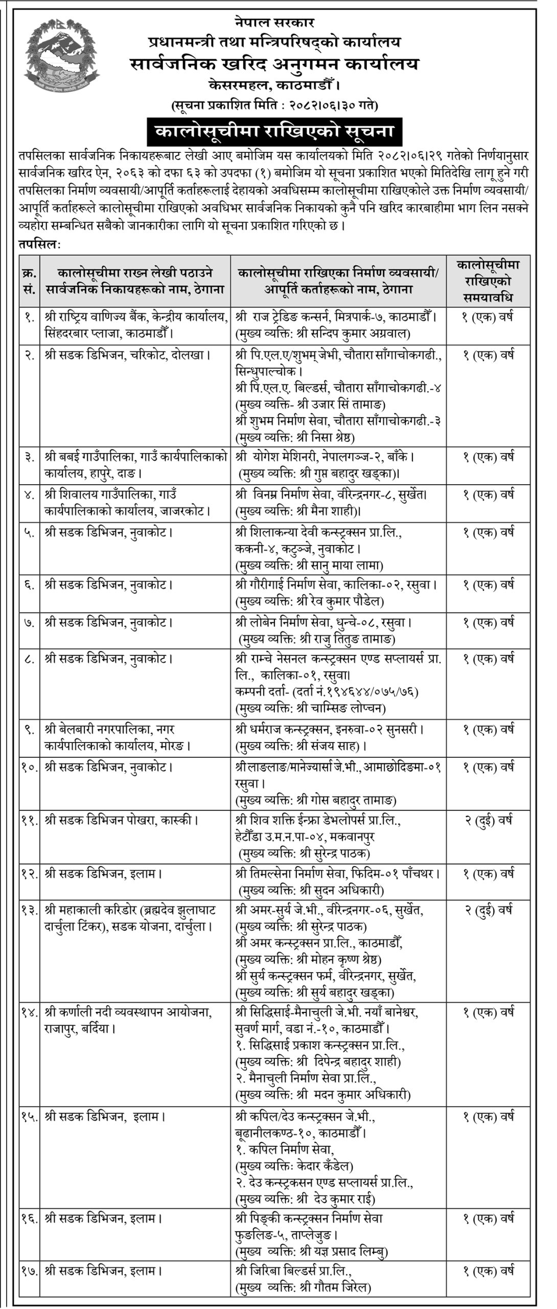 Kathmandu. The government has blacklisted 21 construction companies and suppliers.