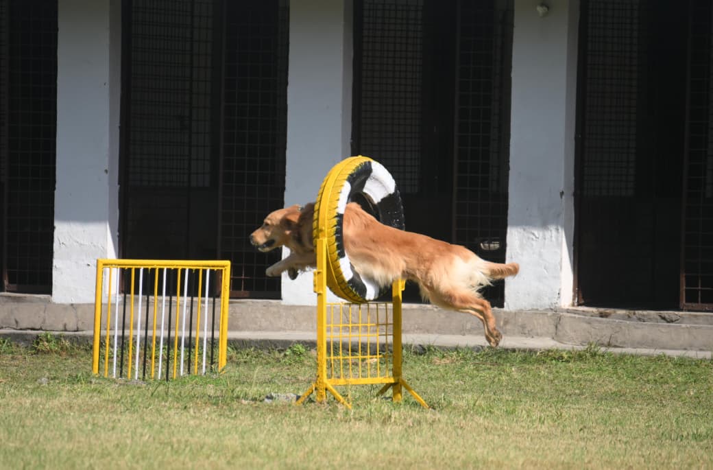 The event featured demonstrations such as obedience to service dogs by police handlers. The winning dog is awarded a medal and prize.