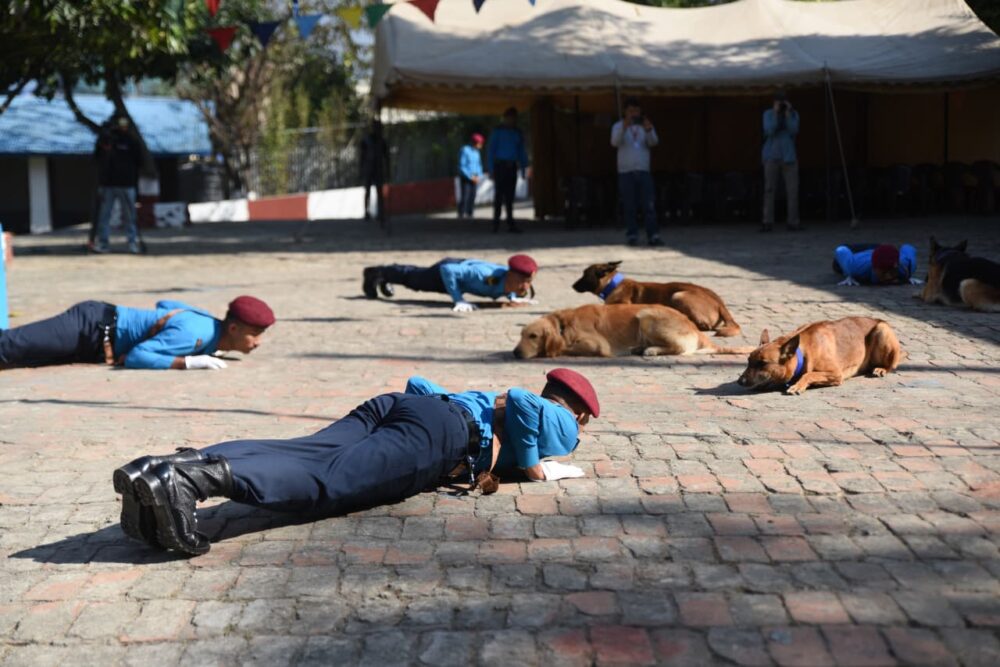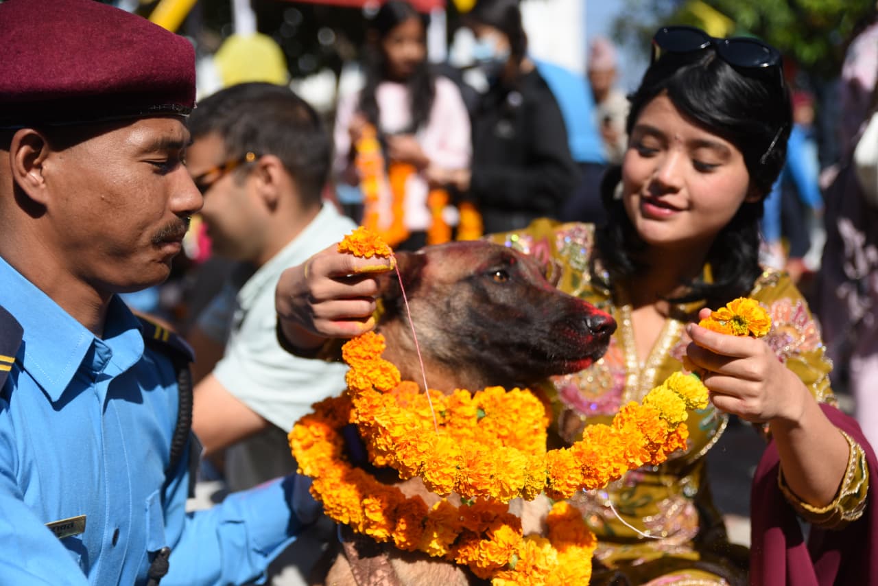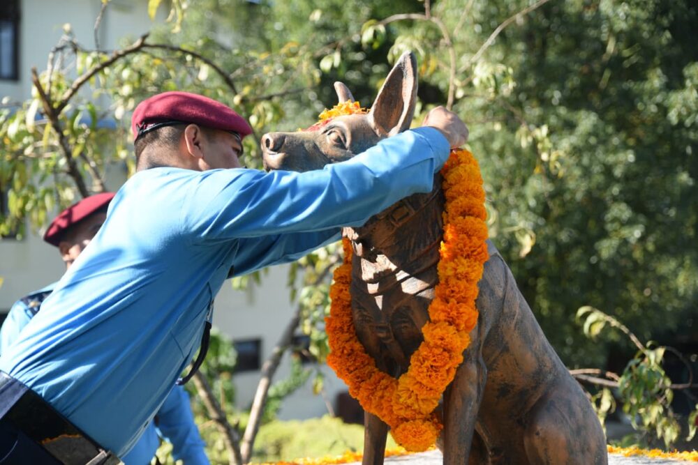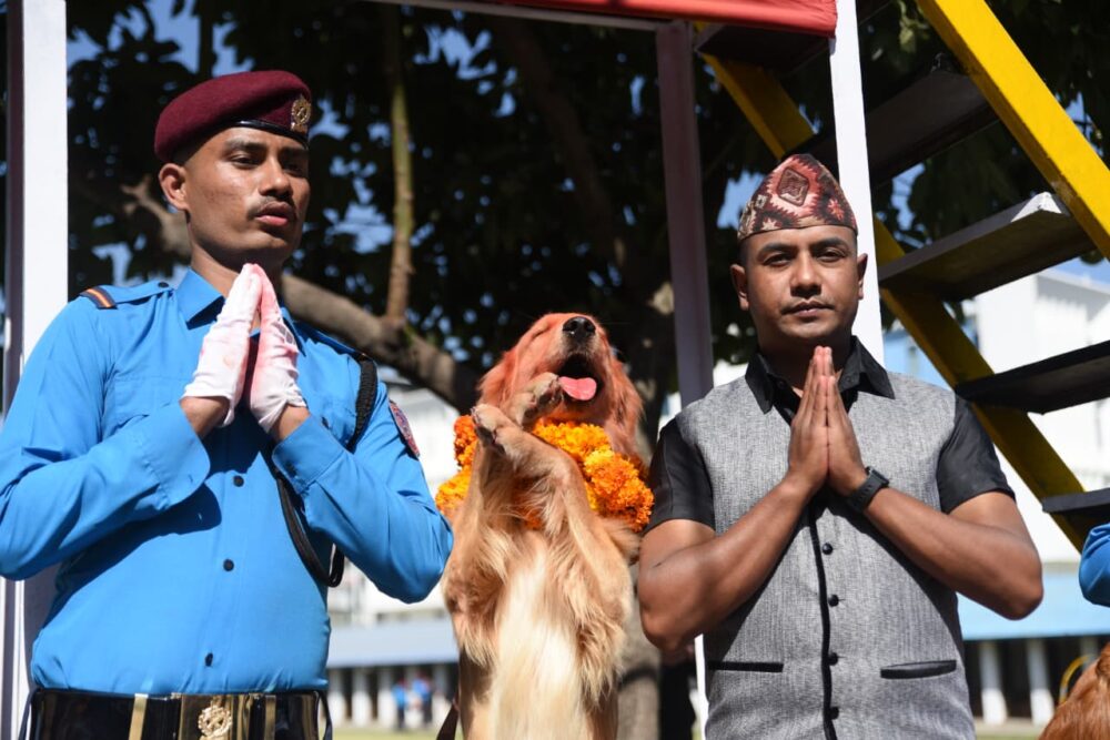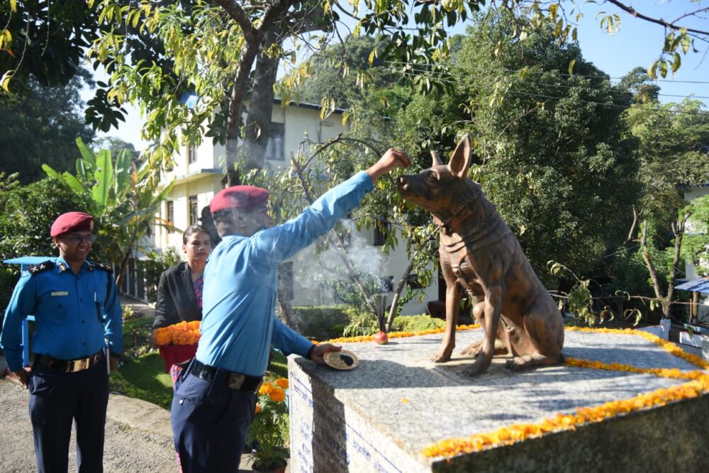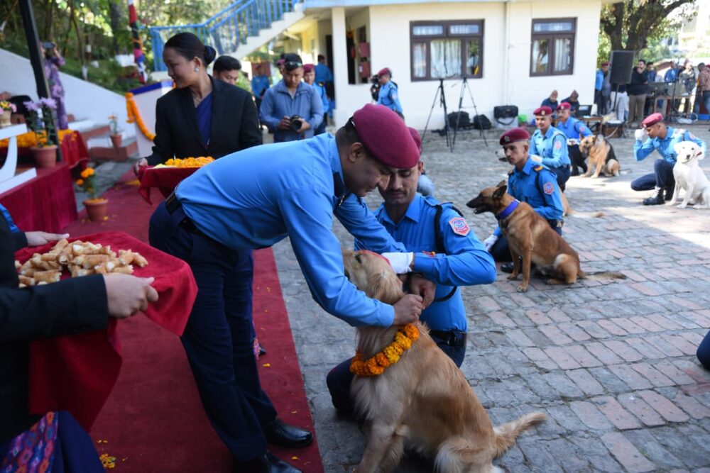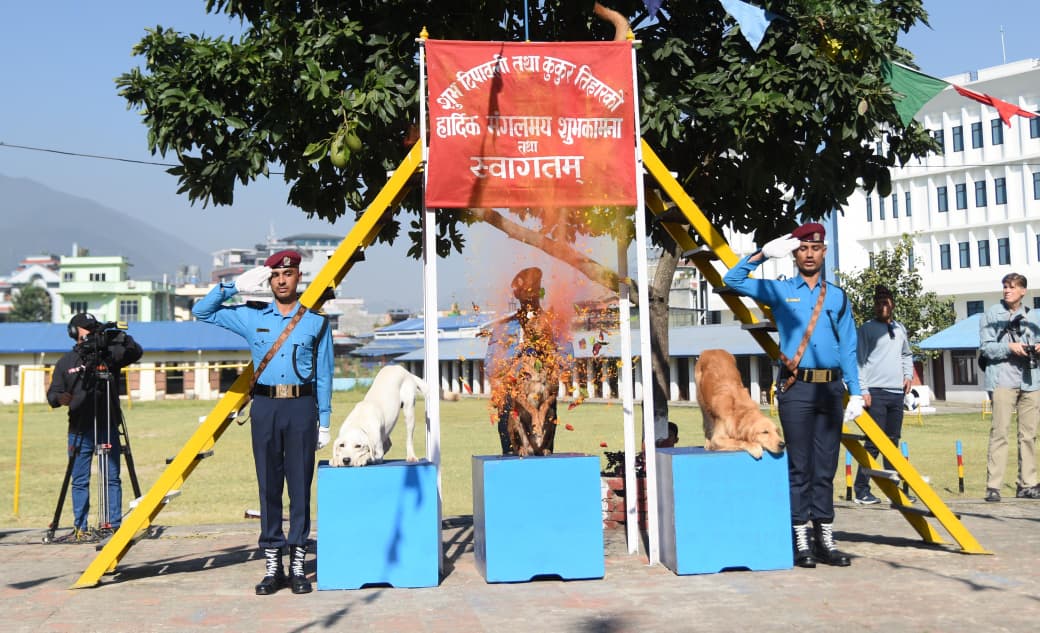 Kathmandu. KATHMANDU: Nepal Police celebrated the festival of ‘Kukur Tihar’ with service dogs. On this occasion, dogs are worshipped with garlands, tika, and special food.
