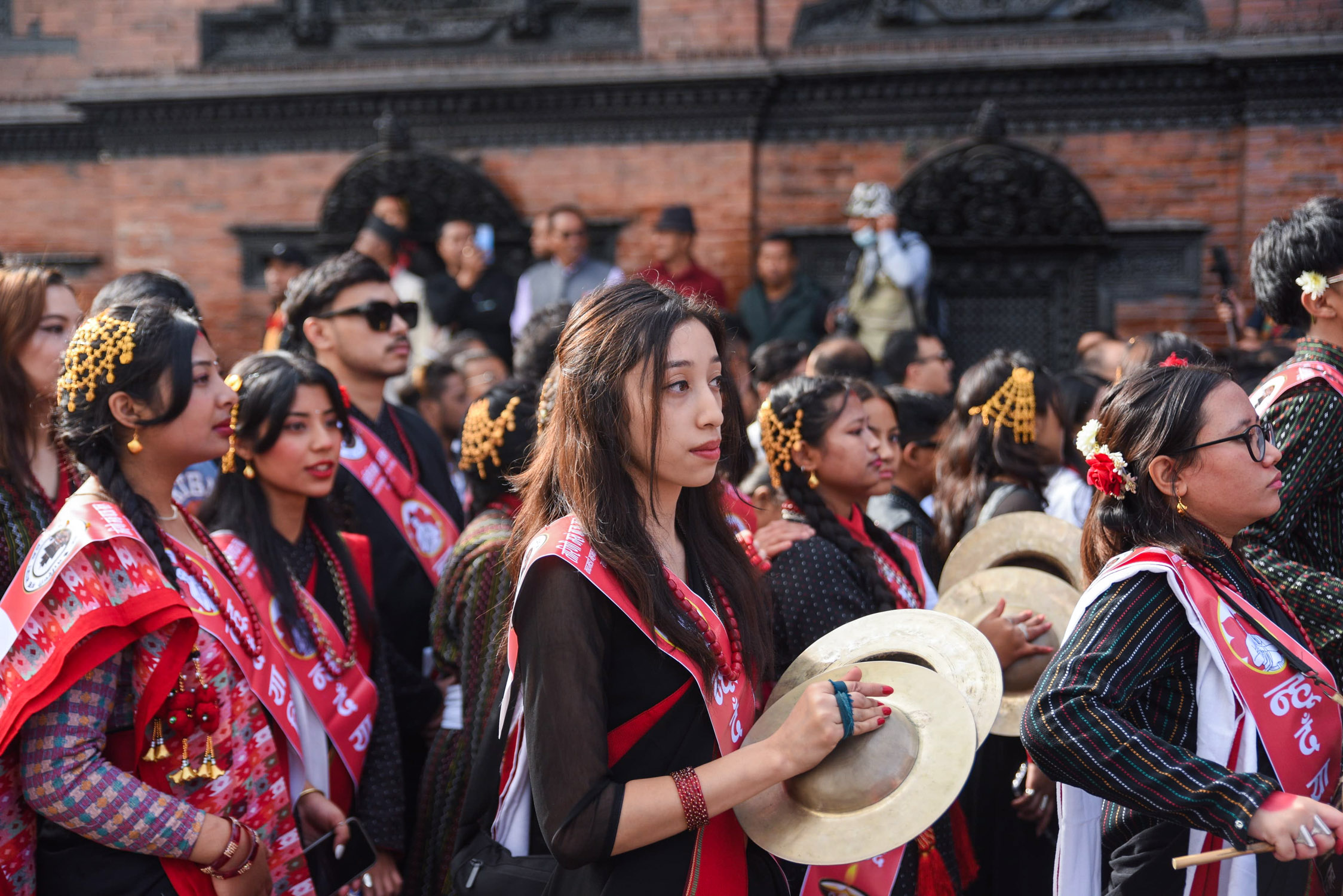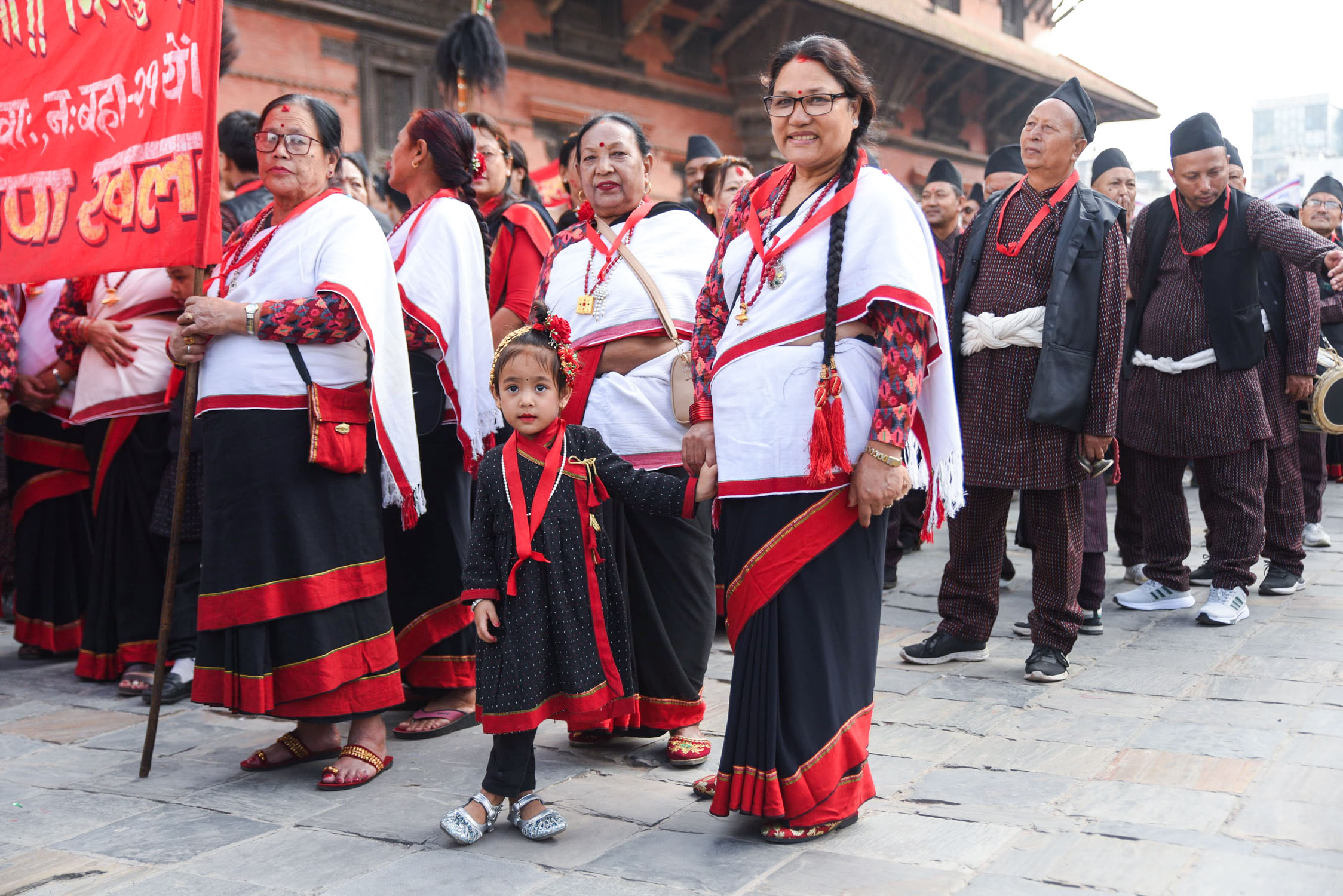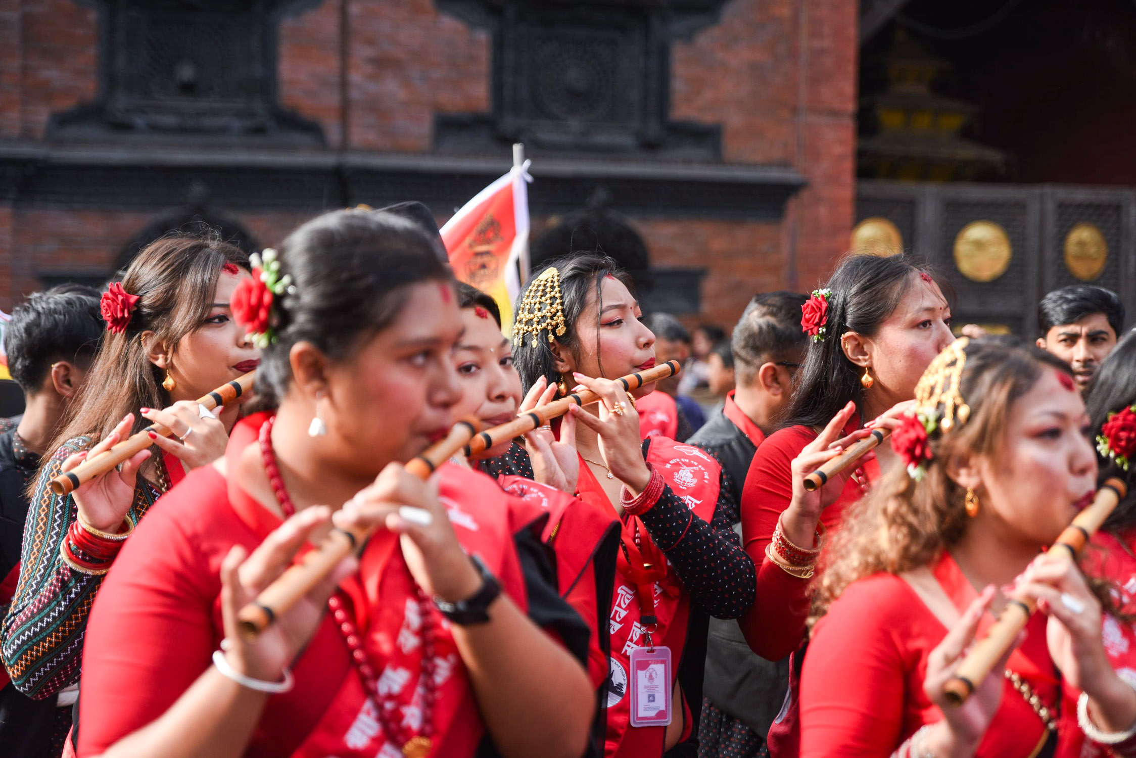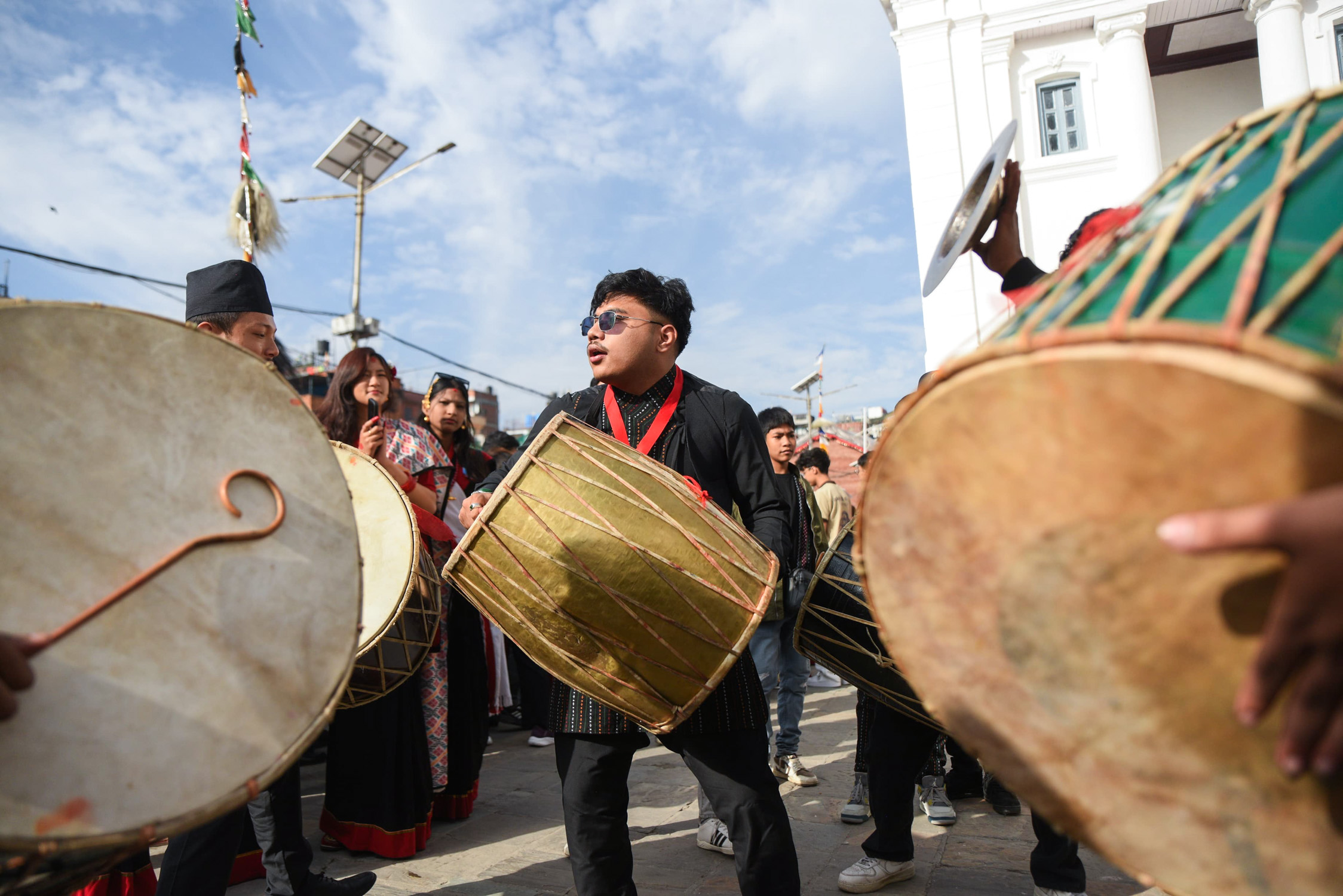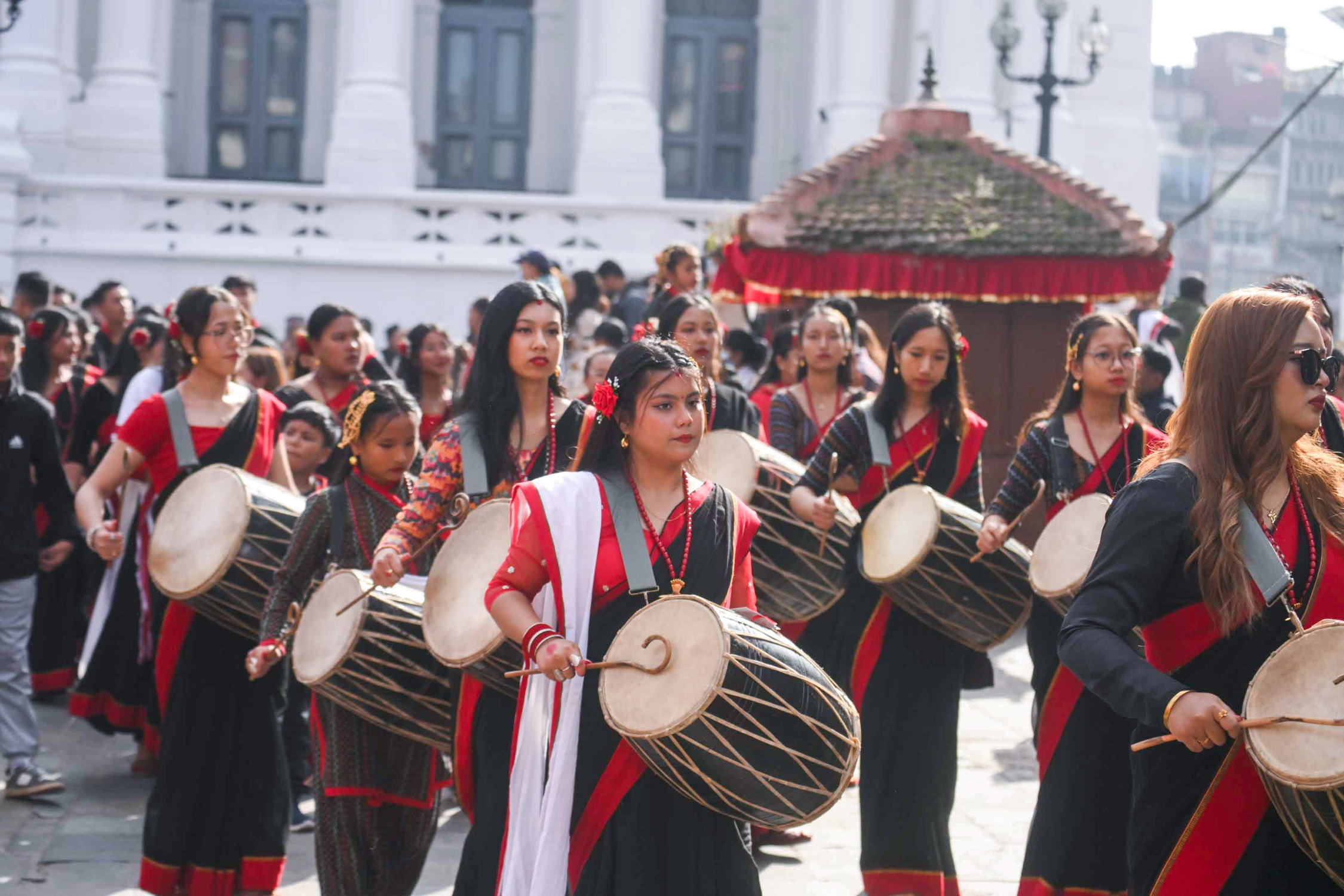 Kathmandu. KATHMANDU: A New Year’s Nhu Daya Bhintuna (best wishes) rally was organized in Basantapur Kathmandu today with traditional musical instruments including Dhime and Newari attire.