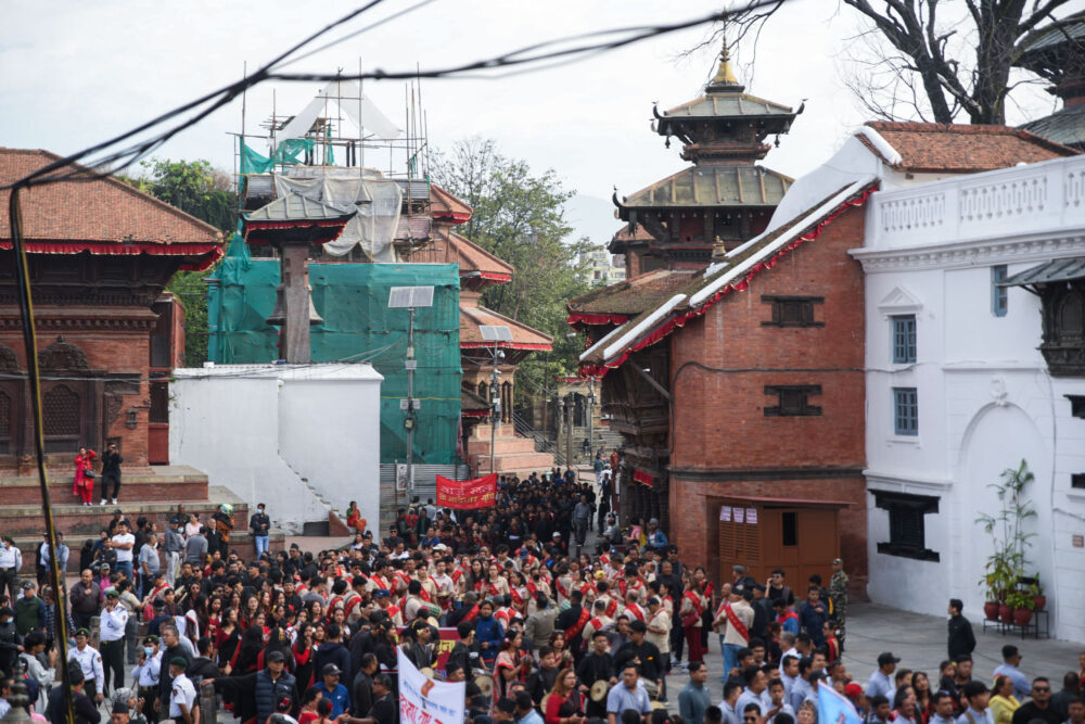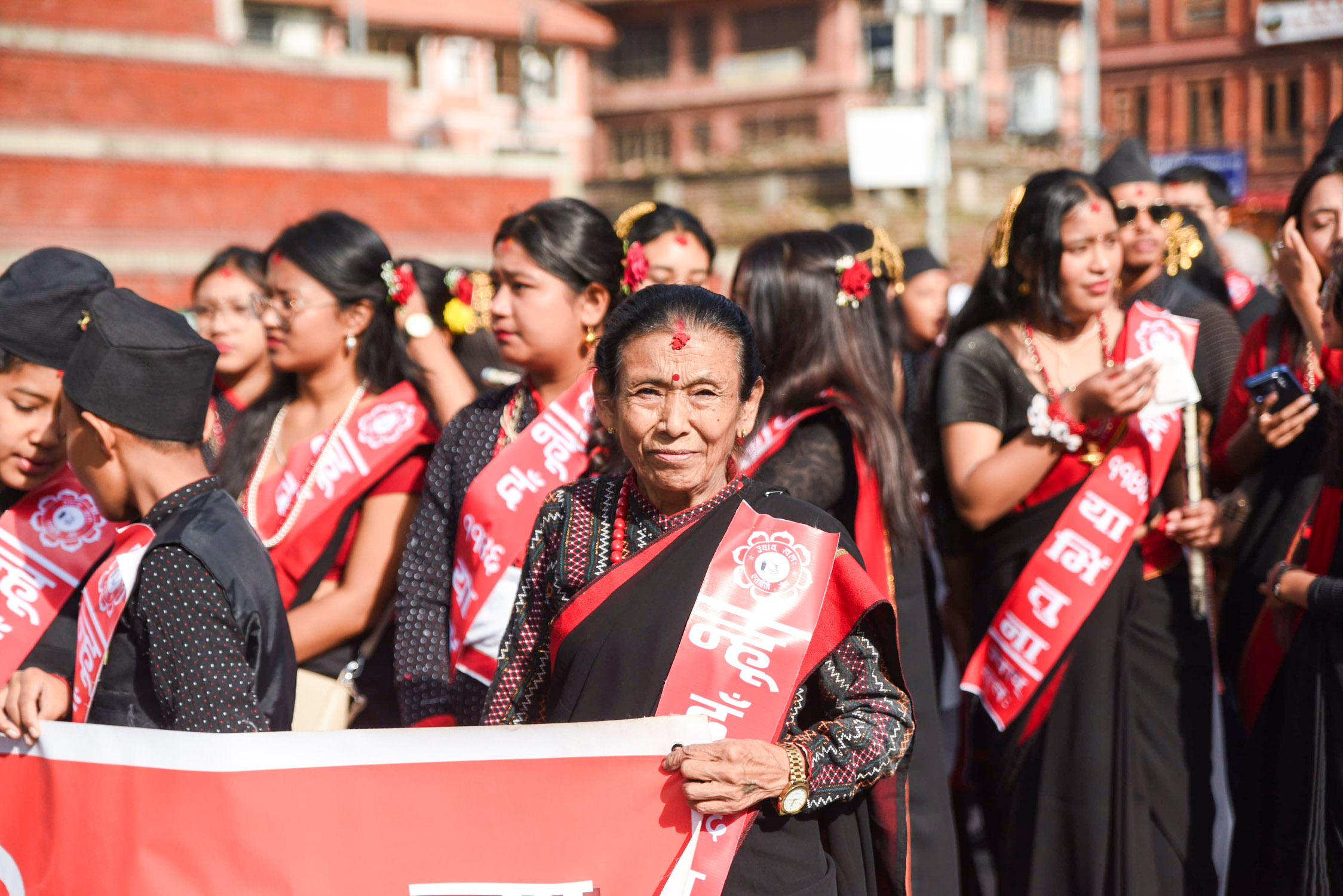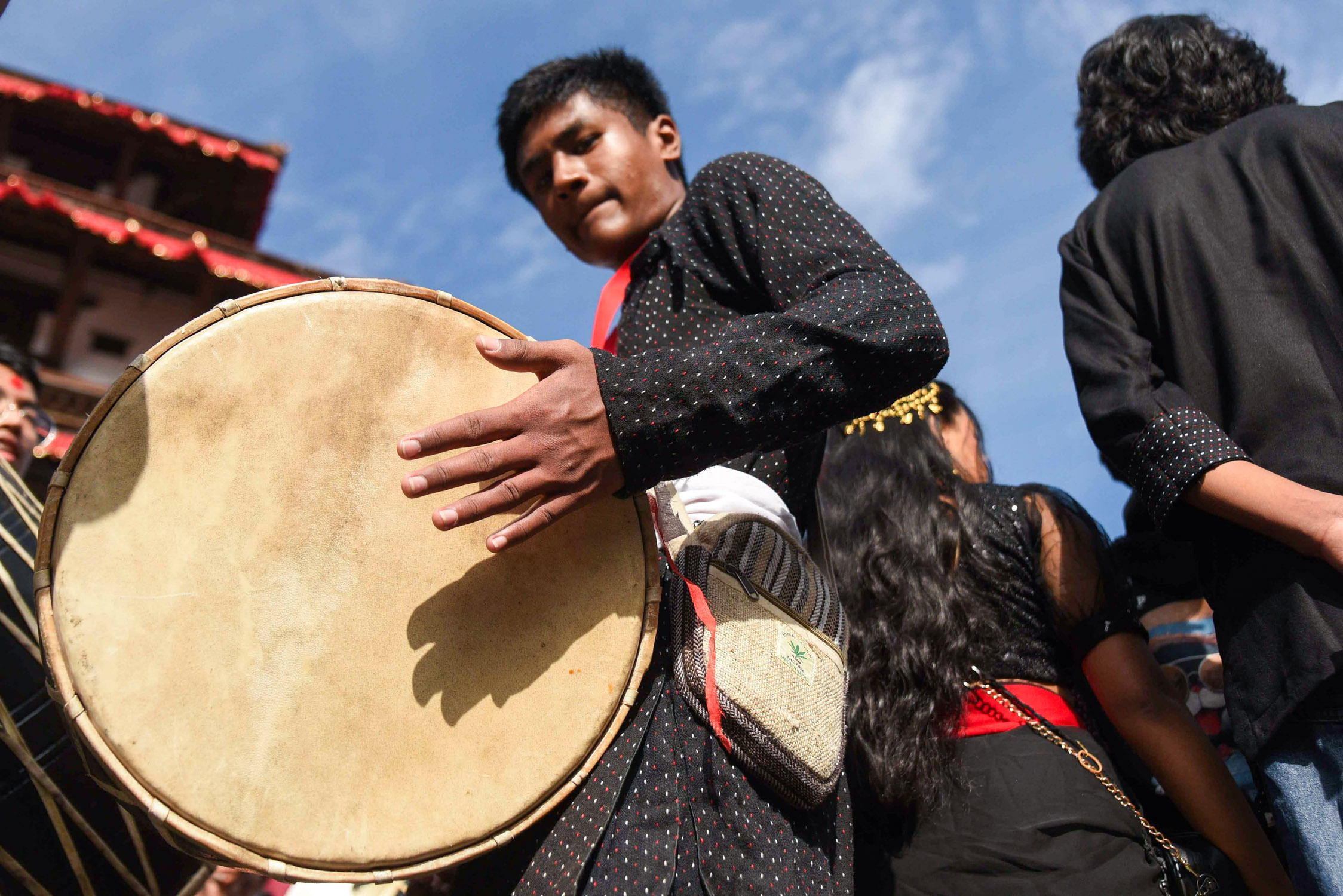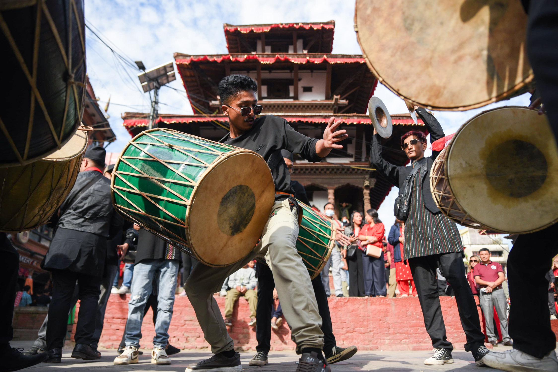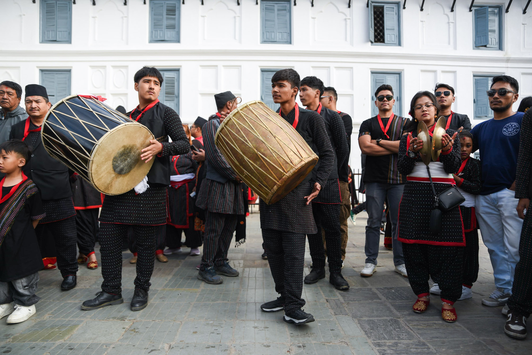 Kathmandu. KATHMANDU: A New Year’s Nhu Daya Bhintuna (best wishes) rally was organized in Basantapur Kathmandu today with traditional musical instruments including Dhime and Newari attire.