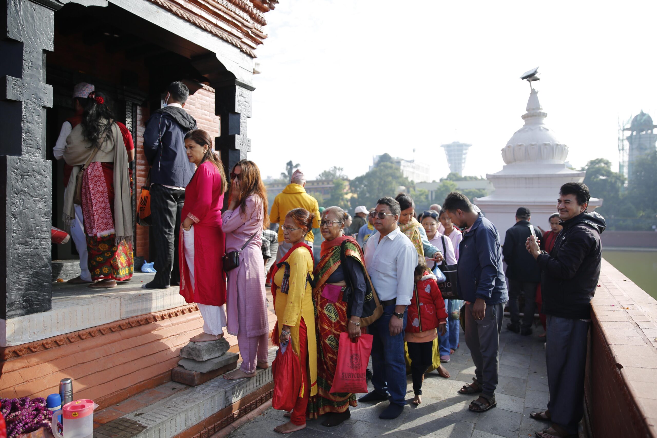 The number of people taking tika has increased at Ranipokhari since this morning. Since it is opened only on the day of Bhai Tika, there is a crowd of visitors in this temple.