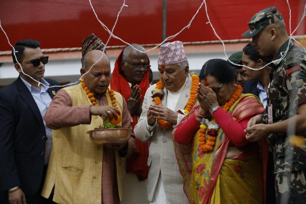 President Poudel, accompanied by First Lady Sabita Poudel, had reached Guheshwari to attend the Chhath Puja. National Assembly member Bishnu Devi Pudasaini, office-bearers of Pashupati Area Development Trust and Guheshwori Chhath Puja Committee welcomed President Poudel.
