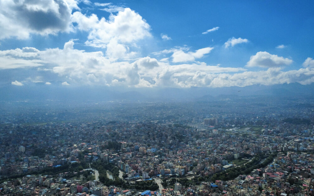 The weather has become somewhat clear today with the influence of the weather system including the Monta cyclone lessened. Kathmandu Valley captured by a drone.