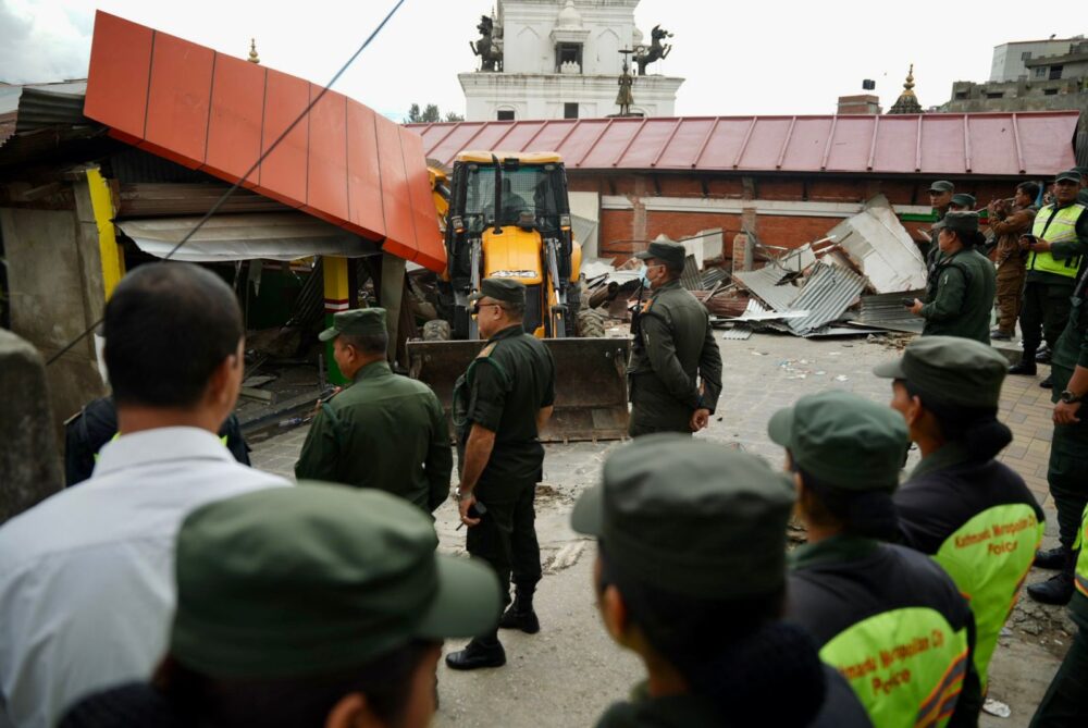 Kathmandu. Kathmandu Metropolitan City (KMC) has operated a bulldozer at the Traffic Police Division on the premises of Ram Temple at Thapathali. The metropolis operated a bulldozer on the structure constructed in the heritage site.