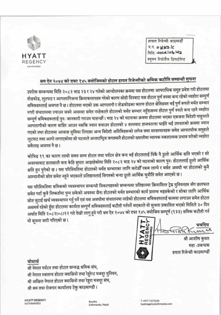 The hotel’s decision will come into effect from December 2 TAG_OPEN_div_13 2. According to the hotel, the renovation work has already begun. For this, it has to manage the expenses by raising financial resources and the hotel has reduced the staff as it is unable to employ workers in the hotel that is not in operation during this period.