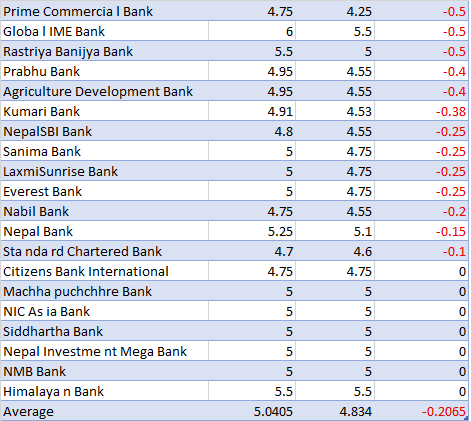 As many as 13 commercial banks have reduced the maximum interest rate on personal fixed deposits in the month of December compared to the previous month. Prime Commercial Bank, Global IME Bank and Rastriya Banijya Bank Ltd each decreased by 0.5 percentage points. Likewise, Prabhu Bank and Agricultural Development Bank have reduced the interest rate by 0.4 percentage points each, while Kumari Bank has reduced the interest rate by 0.38 percent.