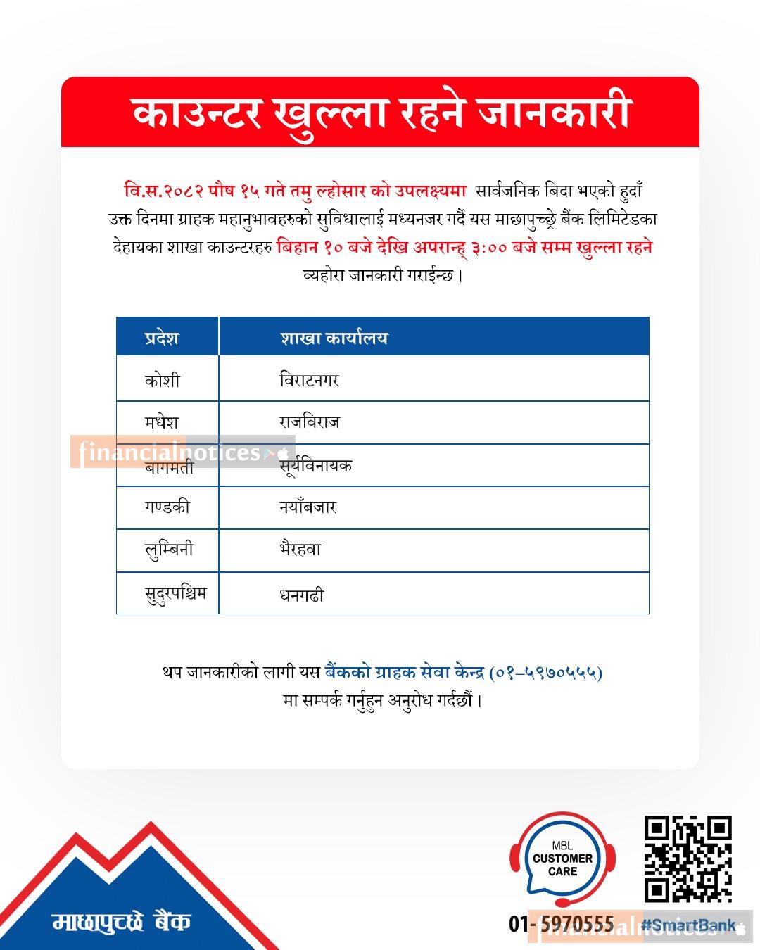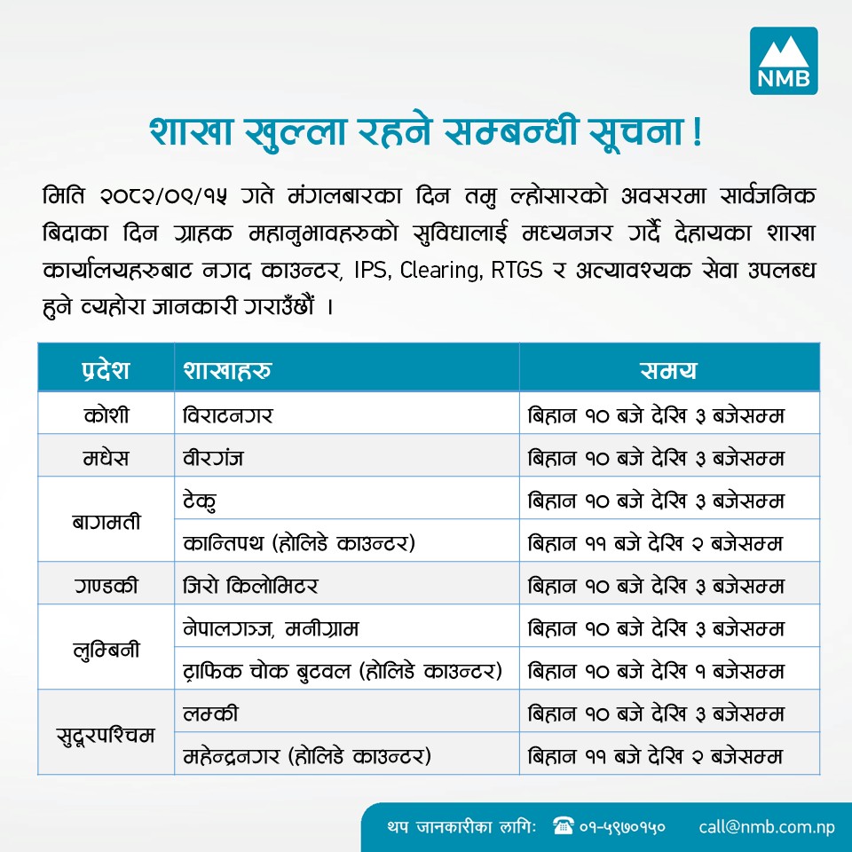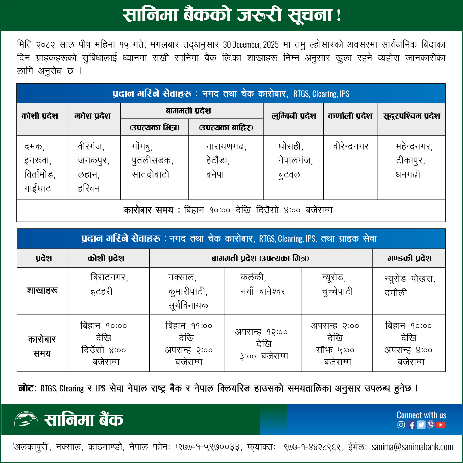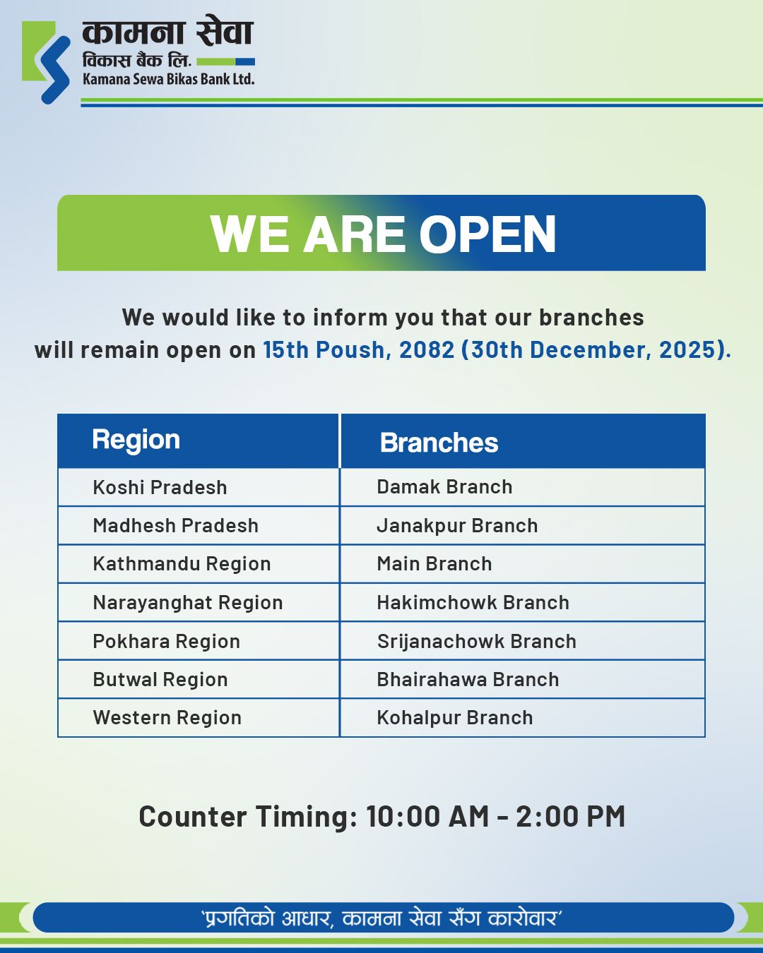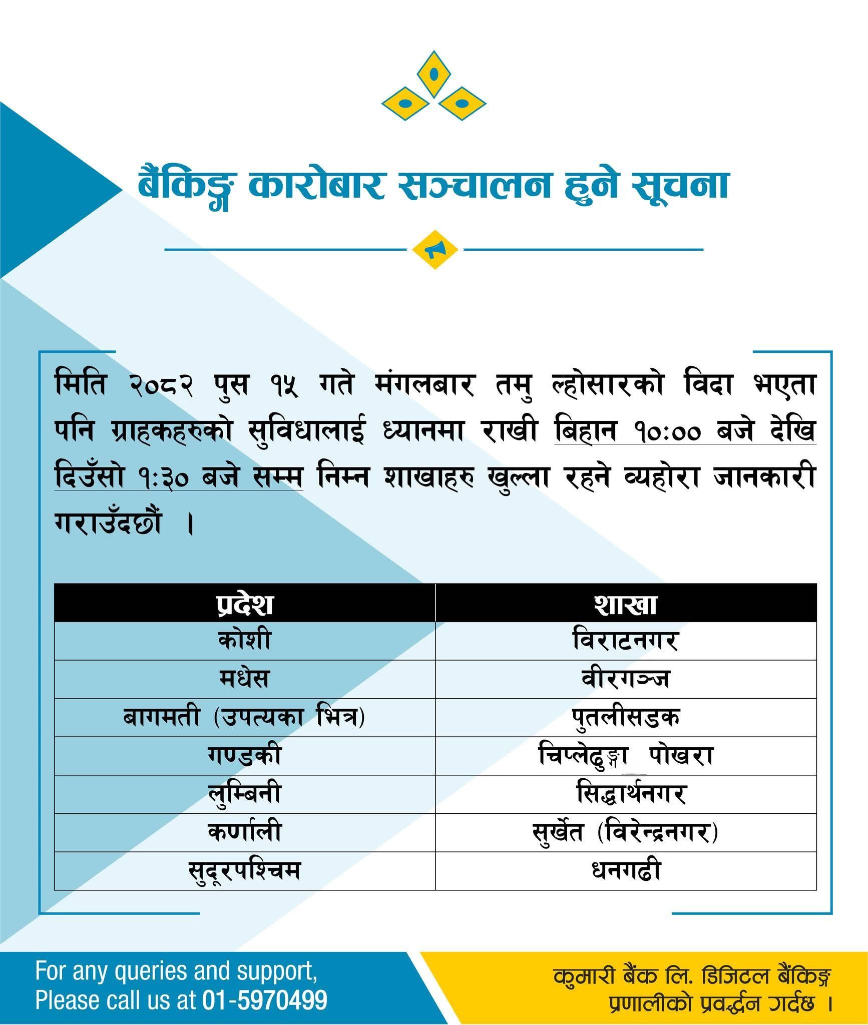 The government has declared a public holiday on the day of Tamu Lhosar. Although the government has declared a public holiday, various banks and financial institutions have started providing services by opening some branches.