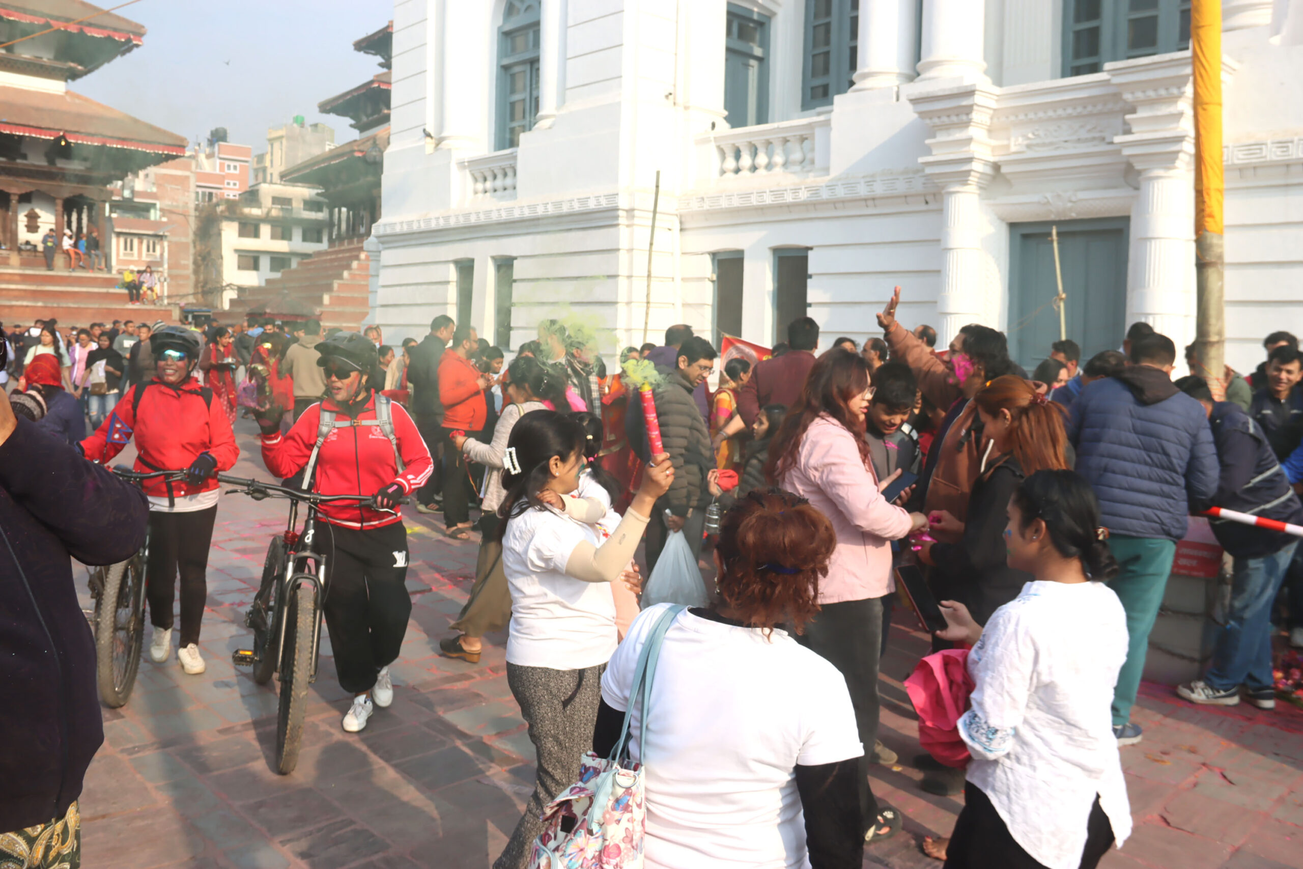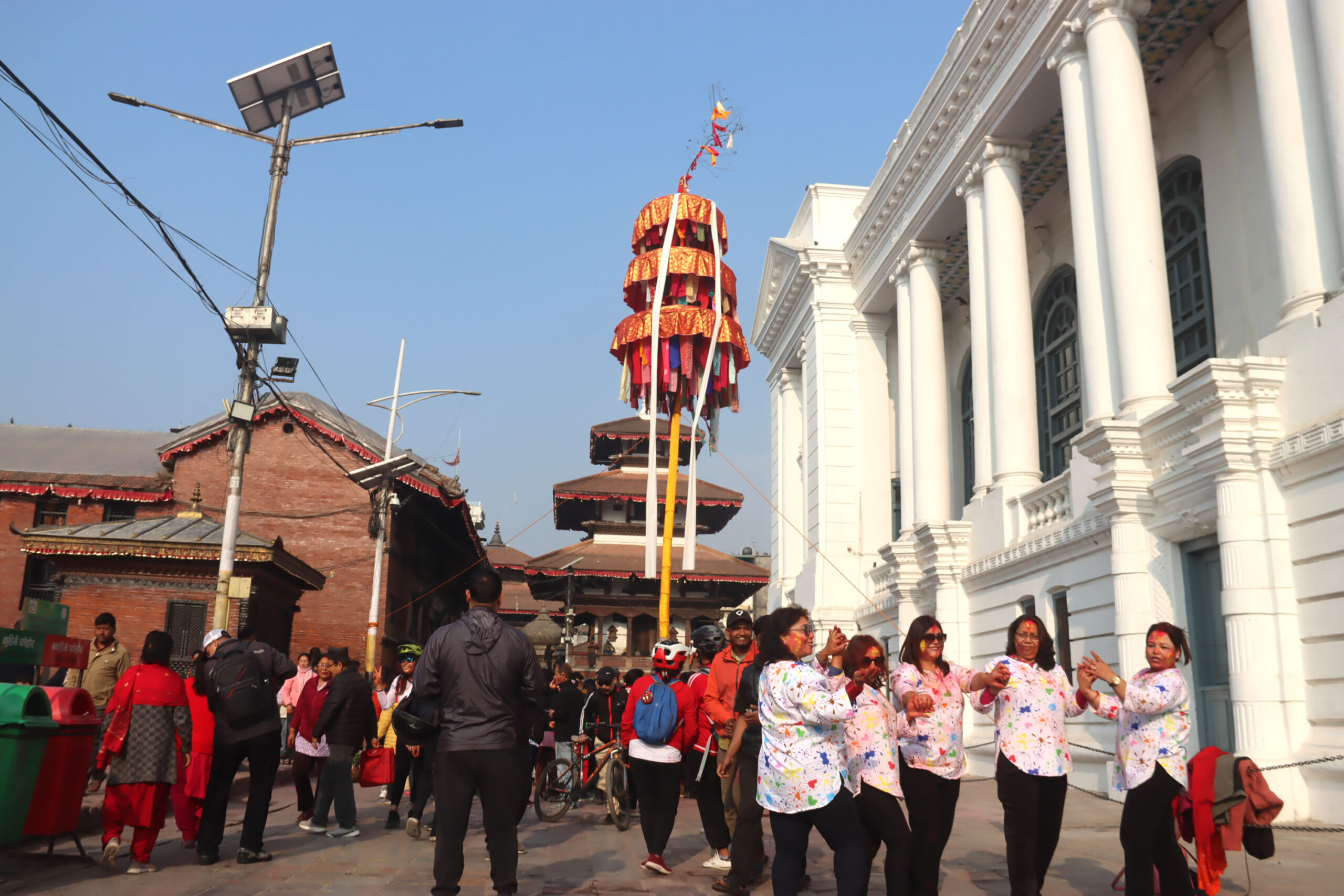 Kathmandu. KATHMANDU: A large number of people have thronged Basantapur of Kathmandu to celebrate Holi.