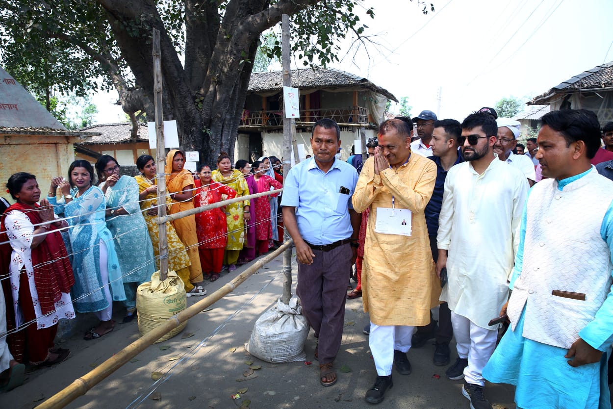 He is also a candidate from Sarlahi constituency-4. He has reached the polling centre in Barahathawa Municipality Ward No. 2 of Sarlahi Constituency No. 4.