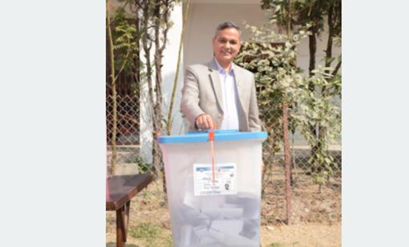 Prachanda cast his vote from the Nepal Police School, Shantipur polling centre in Bharatpur Metropolitan City-14 of Chitwan.