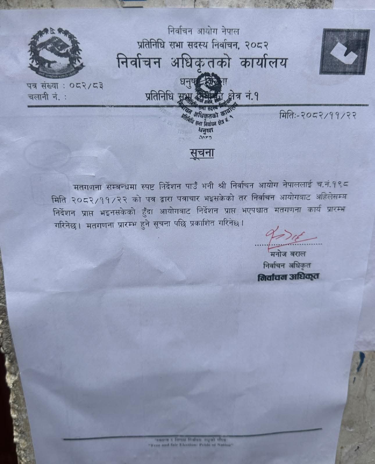 Vote counting in Dhanusha-1 postponed indefinitely