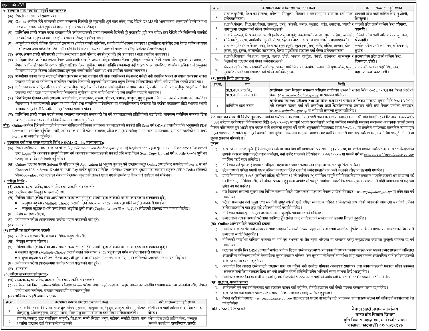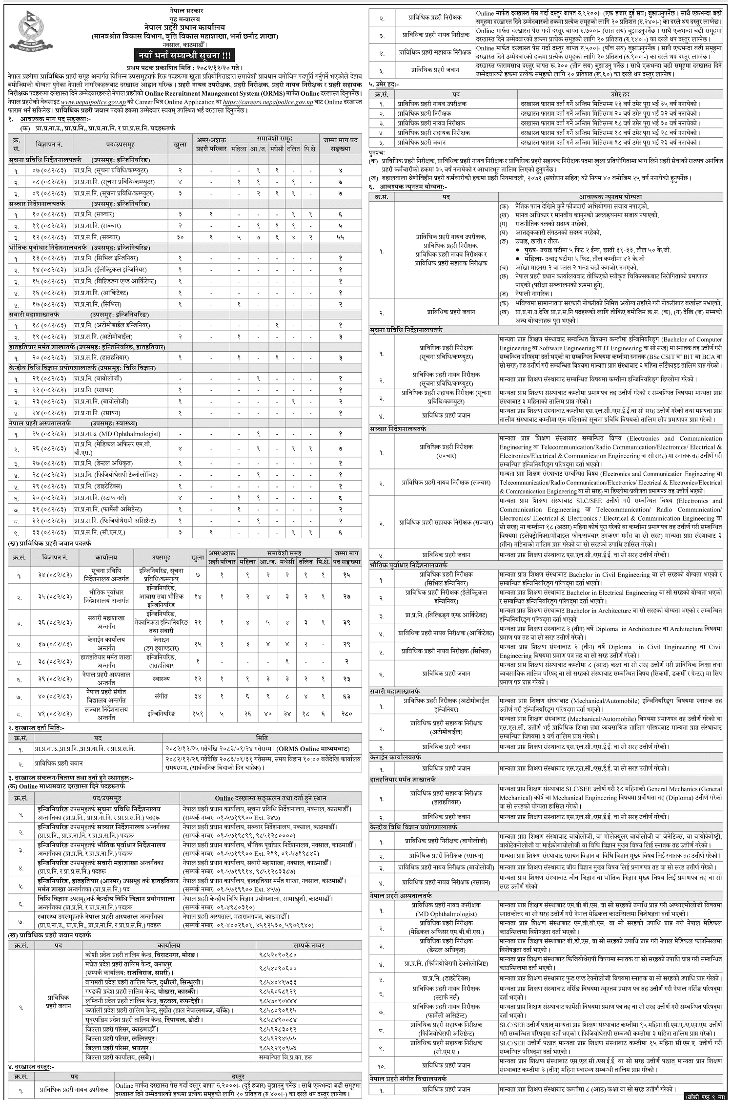 . Nepal Police has called for new recruitment for various posts. The Human Resource Development Department of Nepal Police Headquarters has issued a notice for the new recruitment.