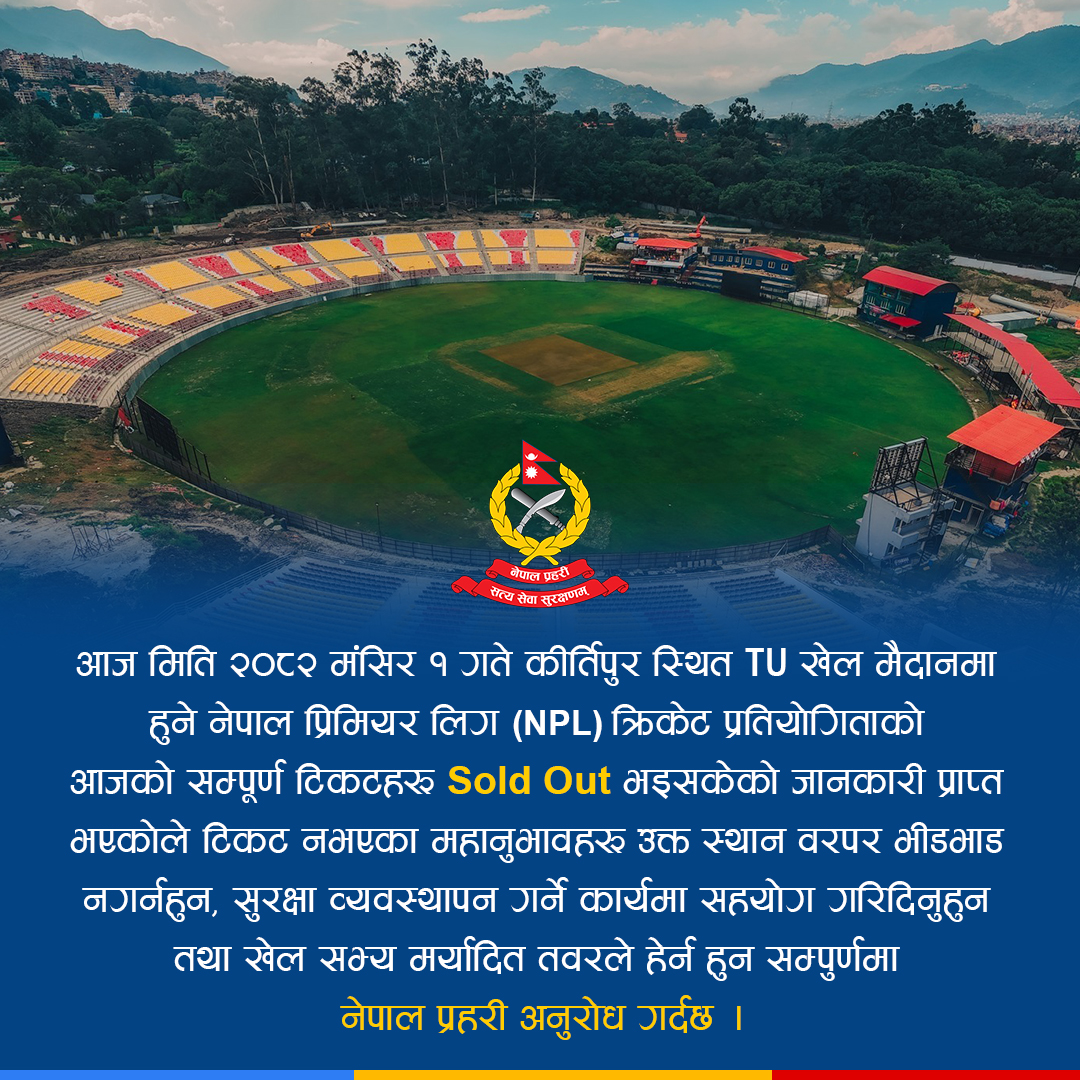 Kathmandu. KATHMANDU: Tickets for the first match of the second edition of Nepal Premier League (APL)[...]