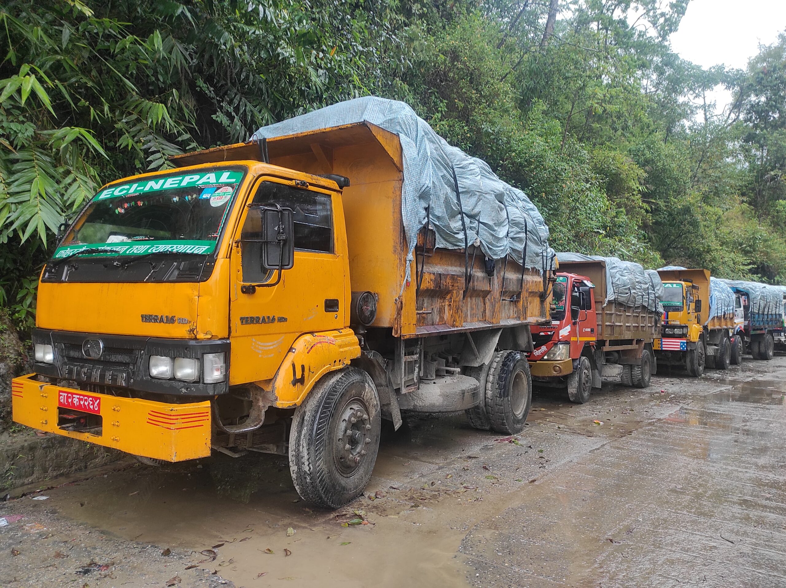 Vehicles carrying garbage from Kathmandu Metropolitan City stopped on the way to Bancharedanda