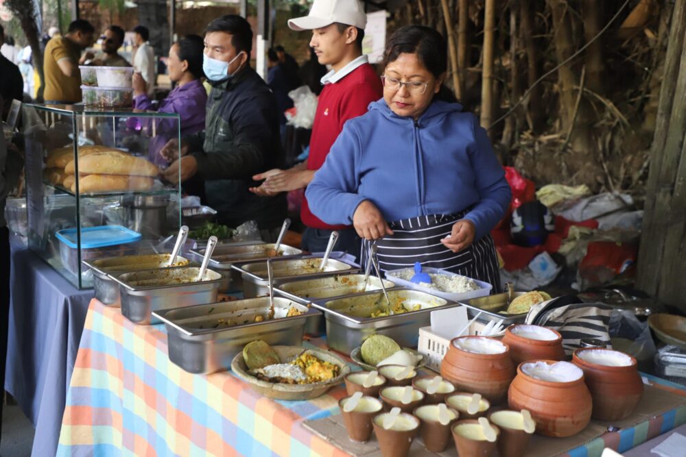 Crowd of Nepalese and foreign tourists thronged the Sherpa Market on Saturday to taste local products