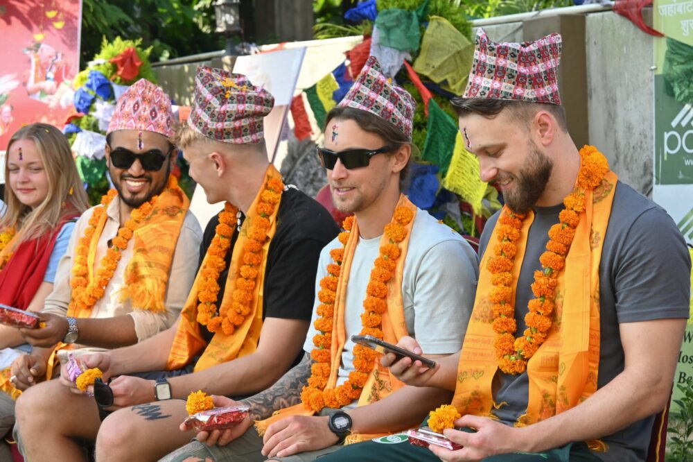 Foreign tourists celebrate Bhai Tika in Pokhara
